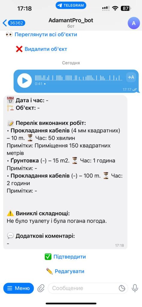 ✅ Будівельні компанії – автоматизація звітності з об’єктів у режимі реального часу.