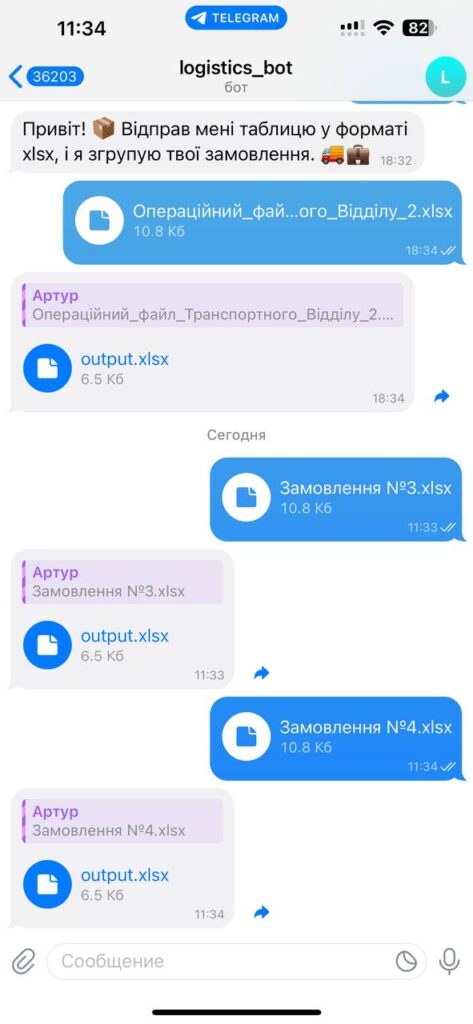 - Покращення комунікації завдяки Telegram-боту для керування логістикою.
